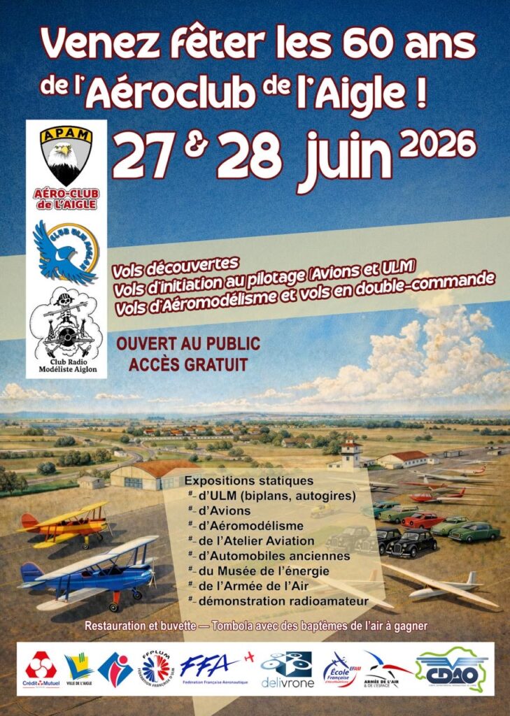 Portes Ouvertes des 60 ans de l’Aéroclub de l’Aigle Samedi 27 & dimanche 28 juin.